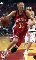 ![]() ![]() 6-9 225, Centerville, Utah, Viewmont High Tryout with the Houston Rockets Turkish Pro Team Yakima Sunkings (CBA) All-NCAA West Regional Team, 1998 Triple Double vs. Fresno St (1/25/99) 4 double-doubles in 1997-98 9 double-doubles in 1998-99 WAC Player of the Week (2/1/99) 1998-99 All-WAC Pacific Division Team 1999 WAC Tournament MVP 1999-2000 MWC MVP Jensen 1999-2000 stats (thru 3/22/00): 13.1 ppg, 7.5 rpg, 3.1 apg, FG:54% 3PT:46% FT:70% |